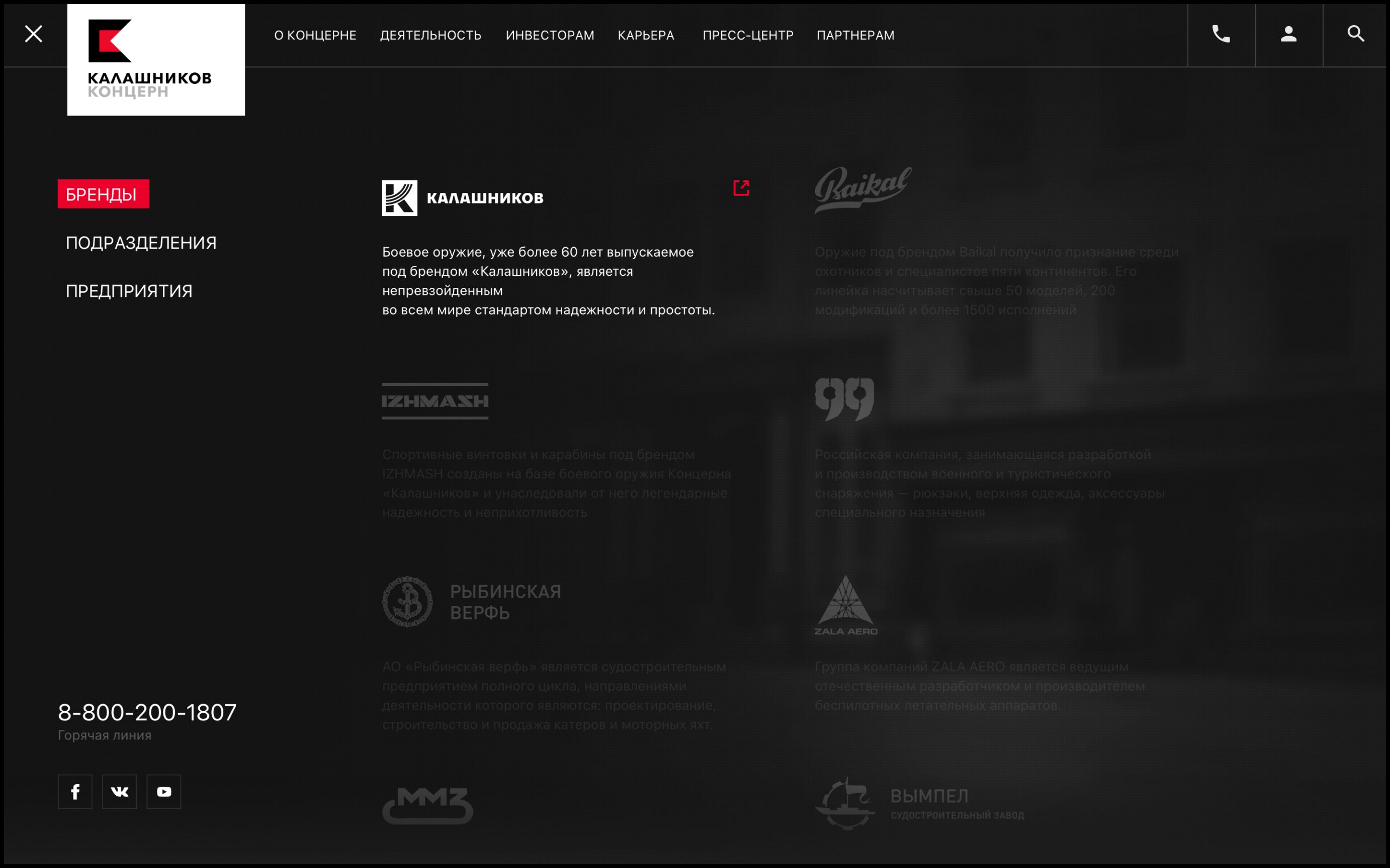 вместе с командой концерна удалось достичь идентификации брендов, вроде Baikal или Zala aero как части группы компаний «Калашников», унифицировать клиентские пути и детализировать описания конкретных единиц техники.